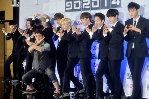완전체 엑소의 새프로그램 기자회견날