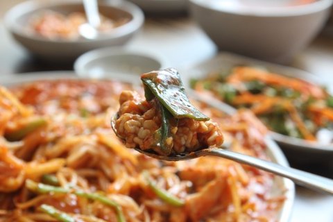 소스와 어울려 고소하네요 콩나물의 아식한 식감과 미나리의