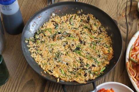 적당히 눌러 붙은 밥에 해물까지 들어있어서
