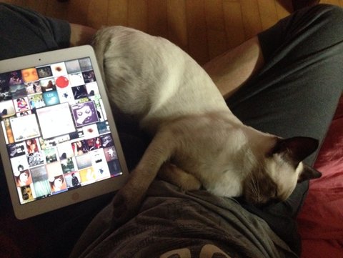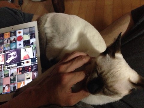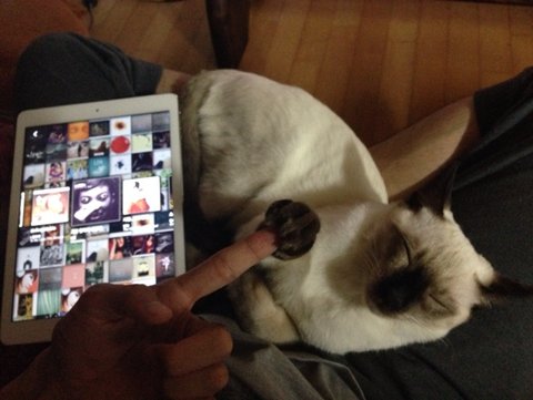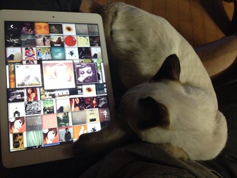 앞발로 화면을 만지려고 하는 쿤이를 격하게 껴안아줘요.(다른 노래 못틀도록ㅋㅋㅋ)
