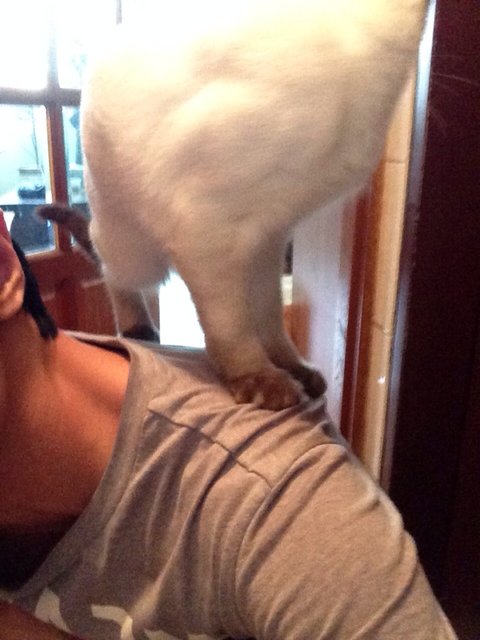 앉아서 신발 신고 있는데 역시나 쿤이가 어깨에 올라타네요.