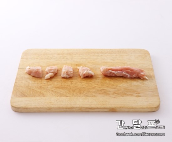 1. 닭안심은 마늘 정도 크기로 먹기좋게 썰어주세요.