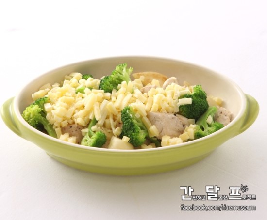 재료 : 마늘 20쪽, 닭안심 200g, 브로콜리 1/3송이, 포도씨유, 소금, 후추, 모짜렐라 치즈 1컵, 파마산 치즈 3T