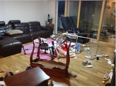 결혼후 아침밥 차려준적이 없어(맞벌이 아님, 애 없음) 남들처럼 아침밥좀 차려달라고 부탁 했더니 화를내며 거실과 주방을 저렇게 만들어 놨네요....