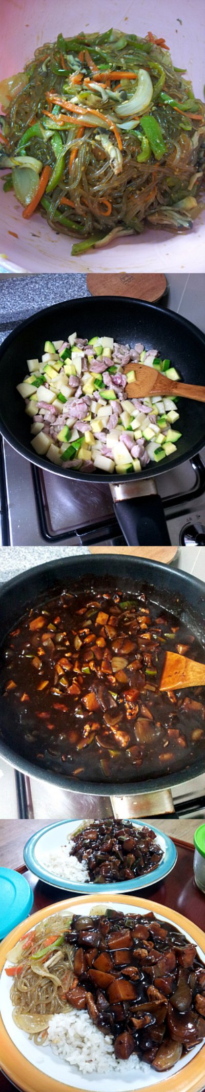 집에있는 야채로만 간단하게 잡채하고 볶아볶아 짜장만들어서 짜장잡채밥!