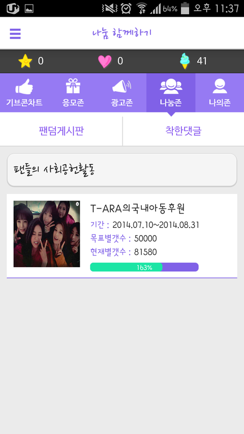 저기 착한댓글 있지 저거 누르고 암거나 댓글 입력하면 하트 250개쯤 받거든? 그걸로도 투표할수있어 좀만더 힘내자