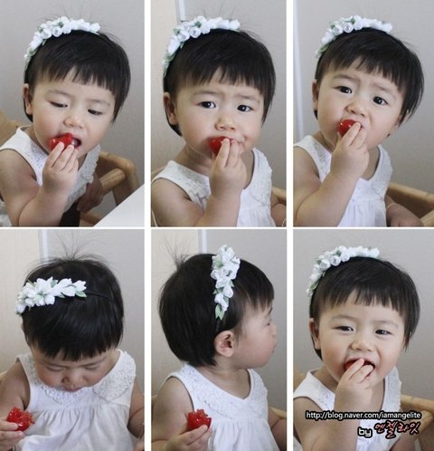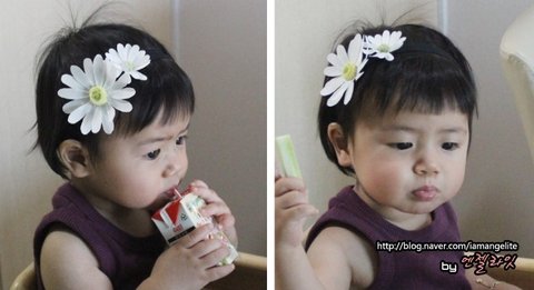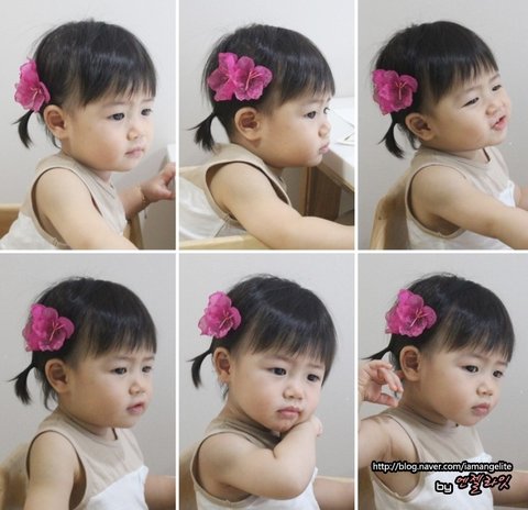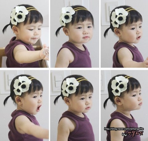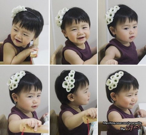 여자아가들 요 밴드 하고 하늘하늘 원피스 입혀