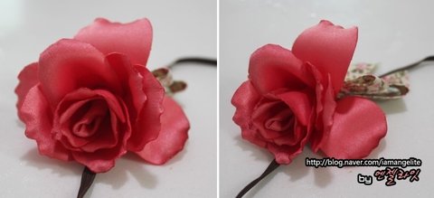 장미꽃은 끝부분을 약간 절제하면서 비틀어줬어요.