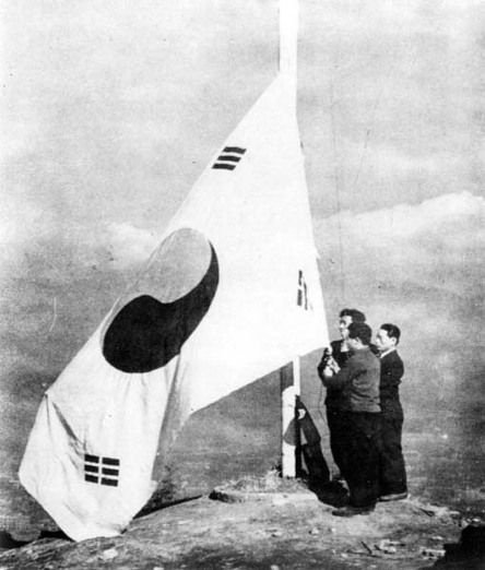 광복 후 서울 남산에 게양 되는 태극기