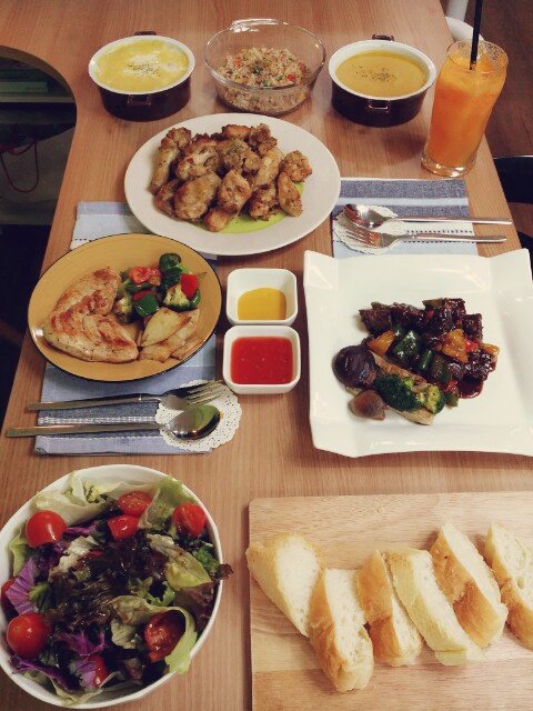 닭가슴살스테이크, 한우스테이크, 샐러드 등등