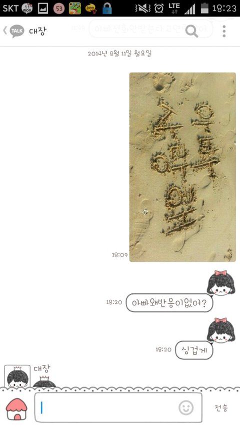 그래서 큰맘먹고 해변가에 손가락 글씨를 써내려 갔죠.