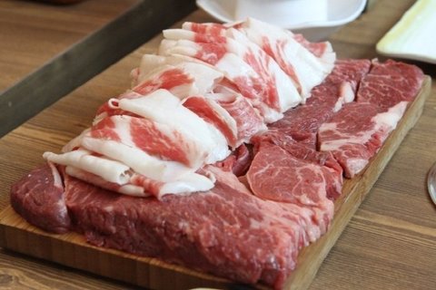 같이나온 소고기 한마리 세트입니다. 차돌박이와 등심등이 어우러진 4가지정도의 부위를 맛볼 수 있도혹 세팅되어 나오니까
