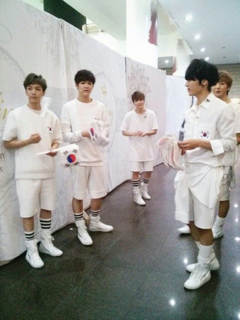 자기들 무대하기도 바빴을텐데직접 팬들한테 나와서 태극기 많이 받아달라고얘기하는 영상!!!!