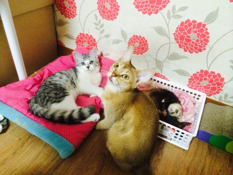 안녕하세요 페럿한마리와 고양이 두마리를