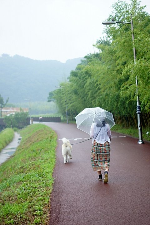 비가 조금 내려서 우산쓰고 ..
