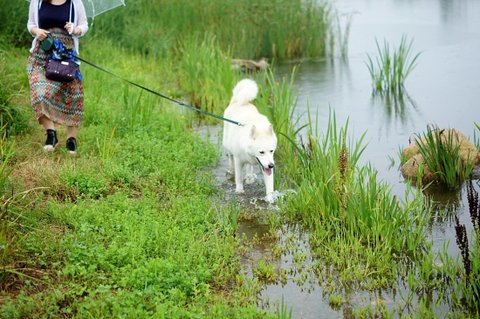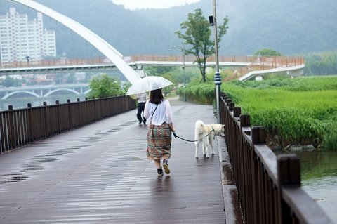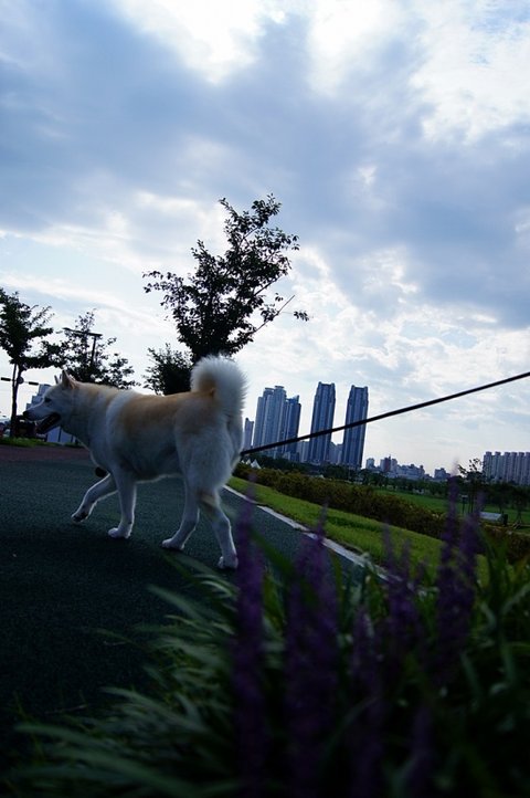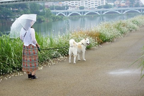 신나게 산책.. 비 조금 내리는건 심바는 방수털이라 괜찮아요.