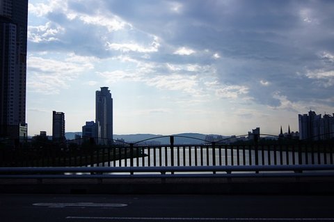 다리를 건너고 있어요. 아침의 태화강