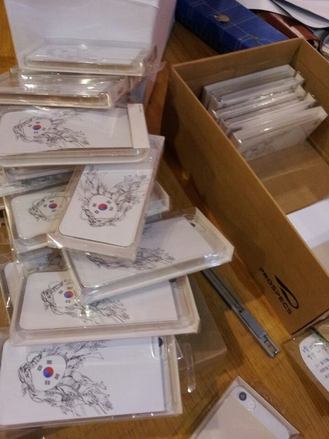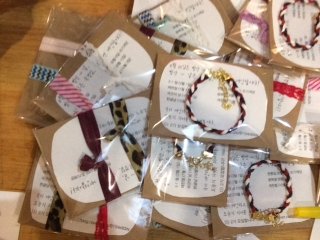 출력해온 케이스 디자인을 자르고, 팔찌와 헤어타이를 포장하고