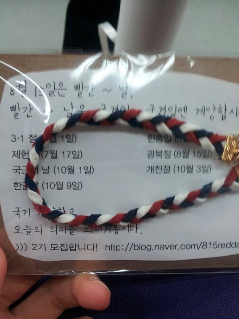꼭 광복절 뿐만 아니여도 국경일 하루쯤은 차고 끼고 다니면서 그날의 의미를 되새겨 볼 수 있도록 하게 하자!