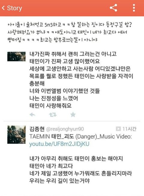 샤이니 종현이 트윗에 태민 응원글을 올림