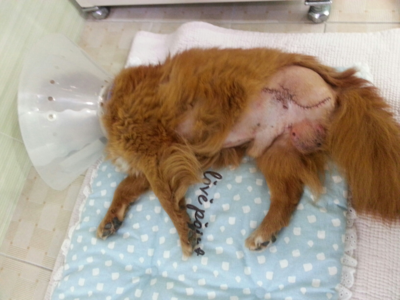 왼쪽 뒷다리를 절단하는 수술을 받았습니다.