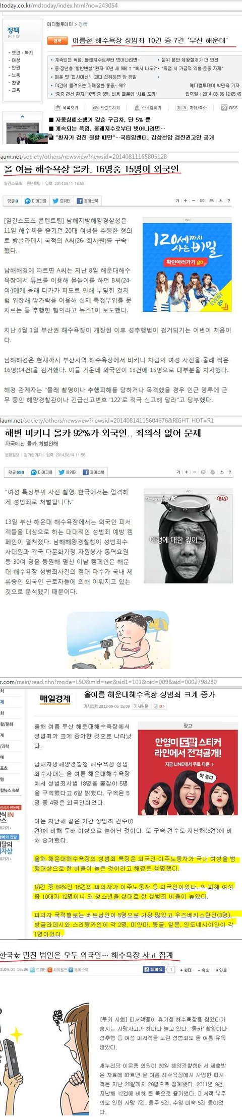 난 중.고등학교때 합쳐서 외국인노동자한테 추행당한거만 5번이넘음...가볍게 버스에서 가방밑으로 허벅지주무르는것부터 심하겐 집까지 쫓아오기도 하고 돈줄테니 자달라고 하기고하고 ㅡ.ㅡ 그렇다고 내가 막 놀고 다니는 애들도 아니었고...ㅠㅠ 그래서 난 외국인 볼때 정말 벌레보는것같고 싫음 소름끼치고ㅠㅠㅠ 근데 아직 독립을 못해서 그동네에 계속 살고있단거ㅠ