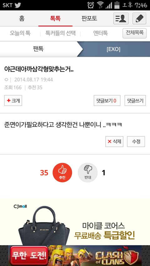 추천수..ㅋㅋㅋ나도저생각함 하필어제준면이수학퓰이음성들어서..ㅜㅠ