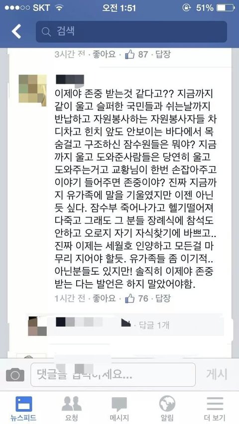 정부 관리 싸대기때리고 박근혜한테 니애비 총맞아 뒤졌다느니 지금 당장 내새끼 못꺼내오면 죽여버릴거라느니 이미 그때부터 정신나간게 딱 보였음 정작 똑같이 자식 잃었는데 침착한 사람이 싸이코패스, 일베충이라고 매장당하는거보고 그냥 아예관심끊음
