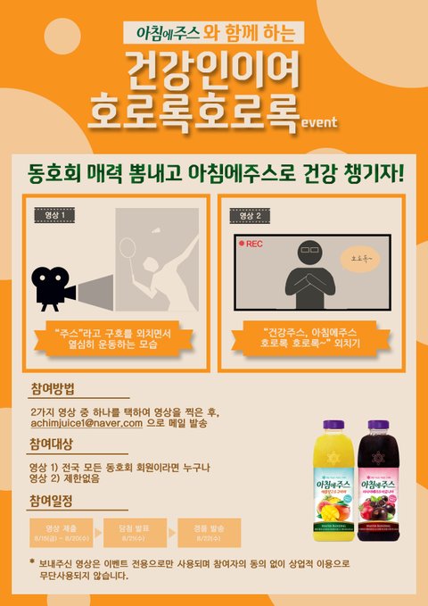 포스터에 쓰여져 있는대로 achimjuice1@naver.com로 보내주신 모든 영상은