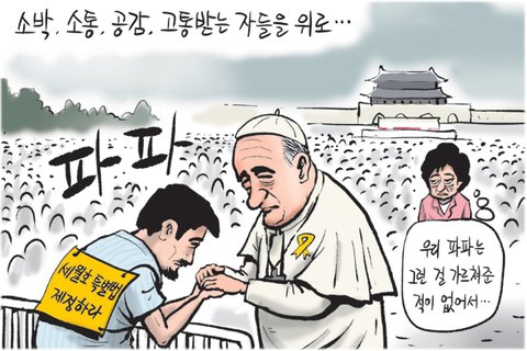 광화문 시복식서 유민 아빠 만나기로…세월호가 불편한 조중동