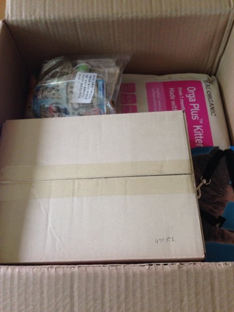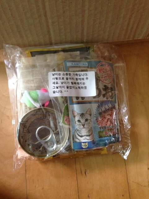 신난 쿤냥 집사는 입으로는 쿤이를 부르고 손으로는 재빨리 박스를 뜯어봐요.