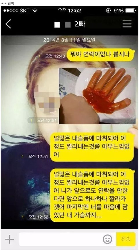 걍개그같은데 뭘 정떨어짐 딱봐도 소세지에 케첩이구만 뭐 진짜 징그럽게도 아니고