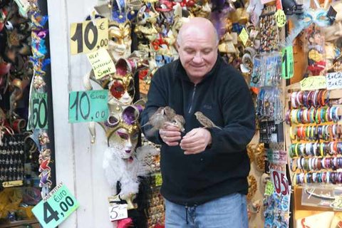 기념품 가게에서 참새들에게 모이를 주시던 사장님.
