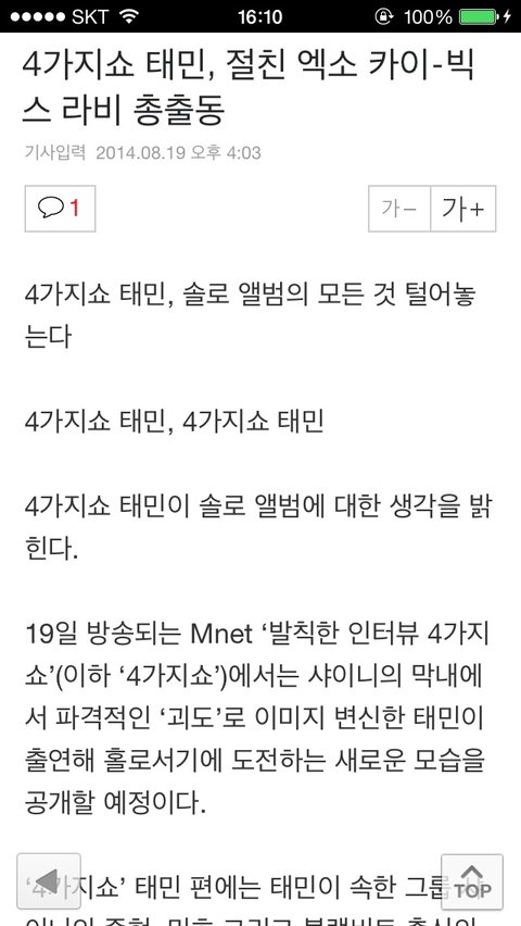 태민이 솔로데뷔하면서 카이랑 방송에서 자주 엮이는거 같아서 좋으다좋으다♡
