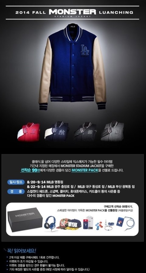 그런데 내일 8월20일 명동점에서 MLLB몬스터자켓 기념으로 몬스터팩(럭키팩)을 99명