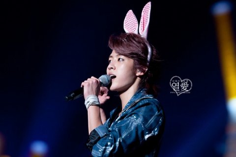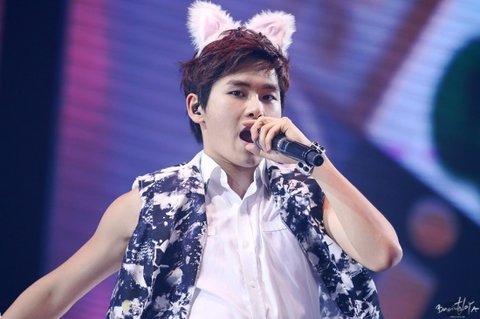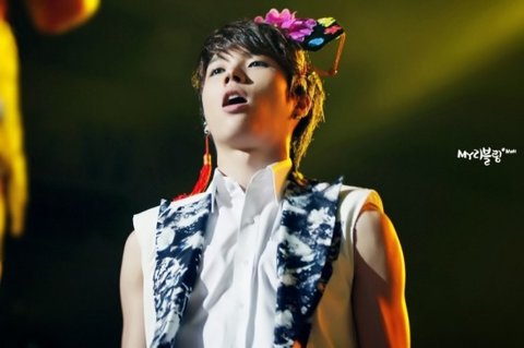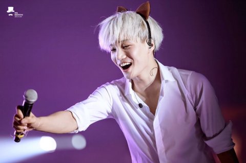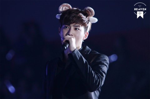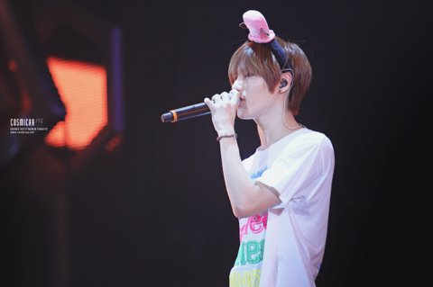 콘서트 무대에 귀여운 머리띠하고 올라간 남자 아이돌