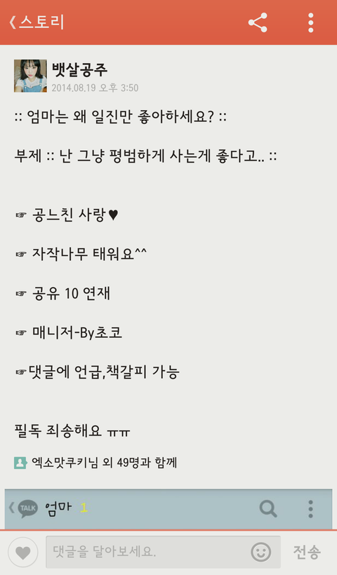 아는동생이 카카오스토리