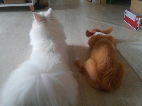 (사실 꼼이가 앉아있으면 고기가 옆에와서 따라 앉아요. 완전 따라쟁이..)
