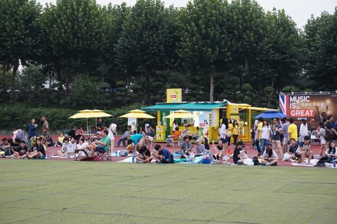 그렇게 산 음식들을 들고 소닉스테이지에 가서 공연도 보고 놀고 있는데