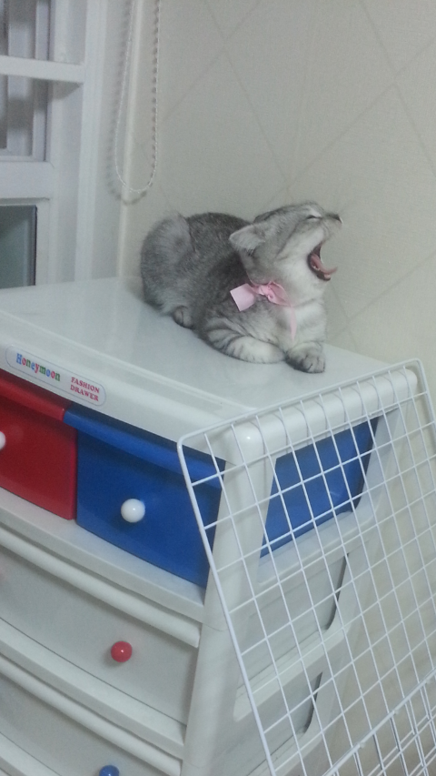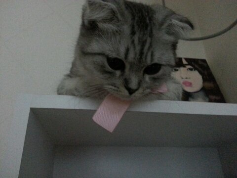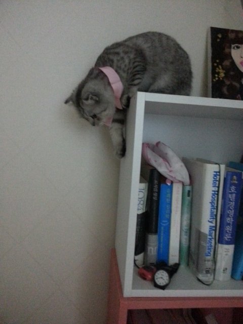 창틀에 앉던지 수납장에 앉던지 둘 중에 하나만 해라.