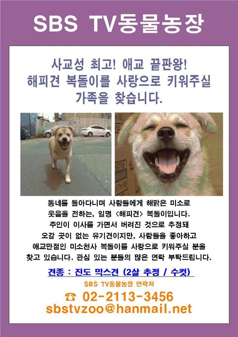 SBS TV동물농장에서 복돌이의 새 가족을 찾습니다!