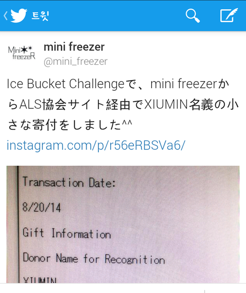 아이스버켓 챌린지 참여하는구나! 꺄~~ 진짜 멋진 시우민팬들!!!