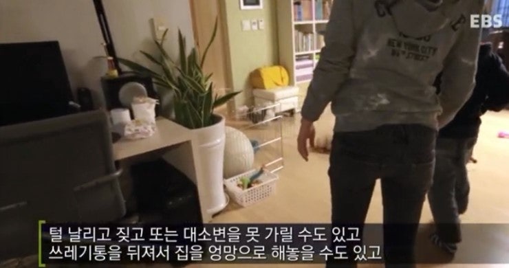 이 부부와 같은 고민을 하는 가정이 많습니다. 사람들과 함께 있을 때는 온순하지만, 외출 후 집에 오면 집이 엉망이 되는 경우가 많죠.