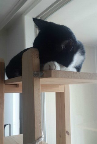 오랫만에 코코가 꼭대기에서 잠을 자고 있어요!