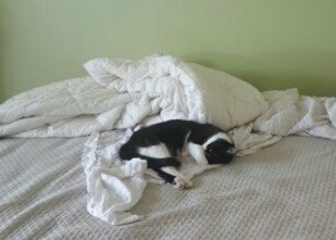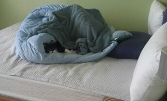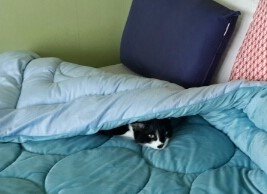 이불 3개 모아놓고 밀어내면서 자는 코코!