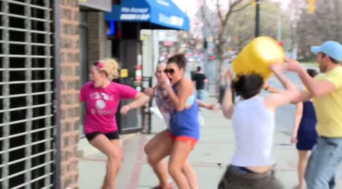 빈통을 들고 달려가 사람들한테 뿌리는 행동을 하면 반응이 어떨까요? ㅋㅋ