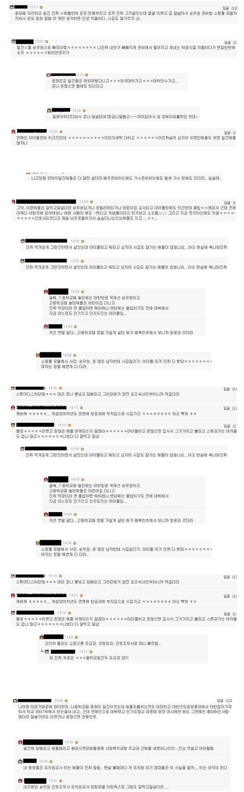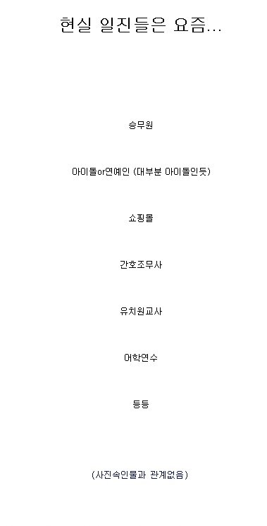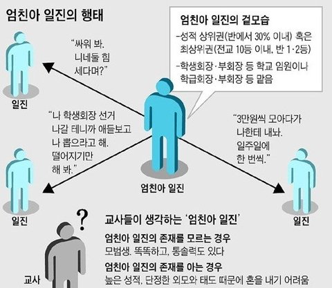 요즘 인터넷을 10대가 장악하더니 개소리도 아주 당당하게 하는구나 ㅋㅋㅋㅋㅋㅋㅋ 전국의 일진ㅇ이 몇명인데 저렇게 되는 케이스만 자기직업 당당하게 얘기하니까 일진이 다 저리되는것처럼 보이지. 내가 일진의 현실말해주랴? 어디 시골 구석에 지잡대 가서 꼴에 보건계열과 갔는데 중고딩때 공부안했는데 대학가서 갑자기 공부가 됨? 돈번다고 공장다닌다 하더니 그지역 나이트 삐끼랑 사귀다가 단물 쪽쪽 빨리고 하루알바로 술집가서 술퍼먹고 지냄 어학연수는 개뿔 여행. 휴가라고는 집앞 술집가서 술쳐먹는게 일상 전국의 일진이 100이라면 90은 위에처럼 삼. 나머지 5가 그나마 적성찾아서 사는거고 나머지 5는 과거세탁질해서 얼굴로 남자꼬셔 사는거고. 니네는 지금 그렇게 자기위로 하면 맘이편하겠지 현실은 5년만 지나봐도 좃같단걸 알거다 네이버 복학왕봐라. 일진 미래 대학생활이 그거라고 보면된다