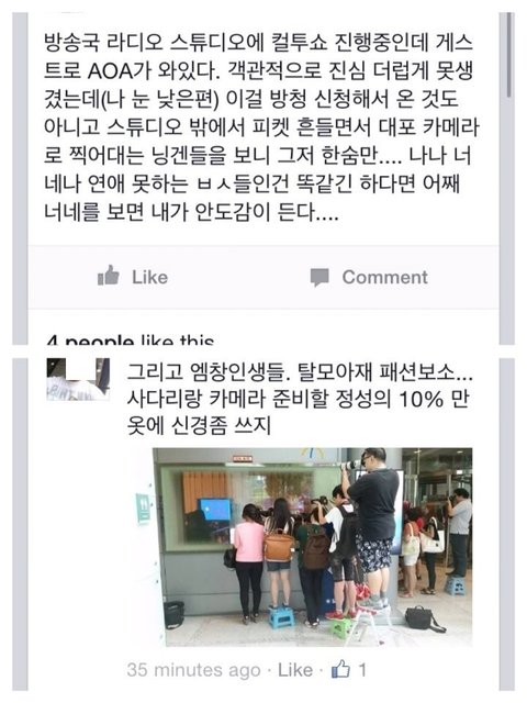틀린말아니잖아 대포들 저걸로 돈 짭짤하게벌어 연예인뒷꽁무니쫒아다니는애들보면 한심안해?