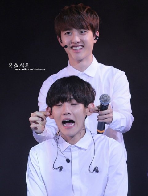 백현이의 귀를 한껏잡아당기는 경수ㅋㅋㅋㅋㅋㅋㅋㅋㅋㅋ