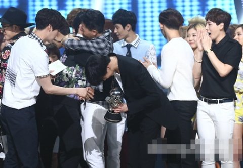 듬직한 리더 강승윤이 트로피도 구십도로 받고 다들 축제분위기~!!
